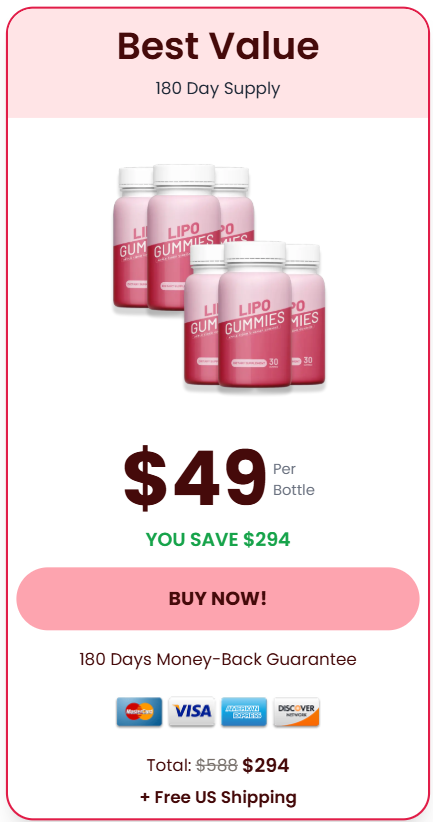 Every single Lipo Gummies supplement purchase is backed by a 180-day 100% money-back guarantee. So if you are not impressed with the results, you can simply choose this refund policy to get your complete money back. Even though the Lipo Gummies formula is made using natural ingredients, its effect on individuals may vary. If you have used the supplement for the suggested period of time and didn’t get the expected results, the refund policy is yours to claim.